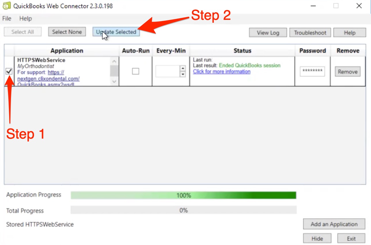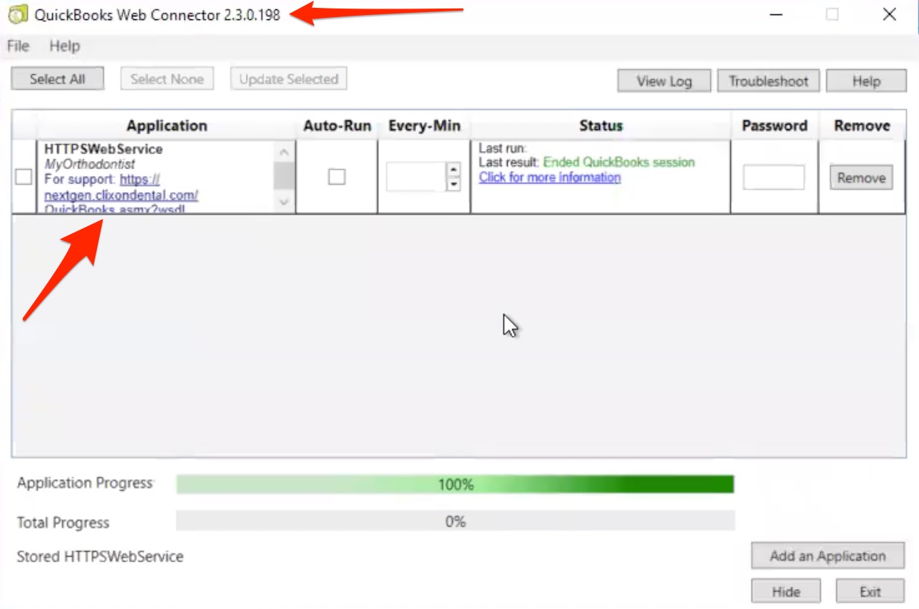 QuickBooks Web Connector will now open and you will see that your new application has been added.